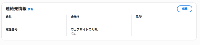 2.「連絡先情報」に「氏名」、「会社名」「住所」「電話番号」を入力する。※ウェブサイトのURLは必須ではないので入力しなくてもエラーにならない。